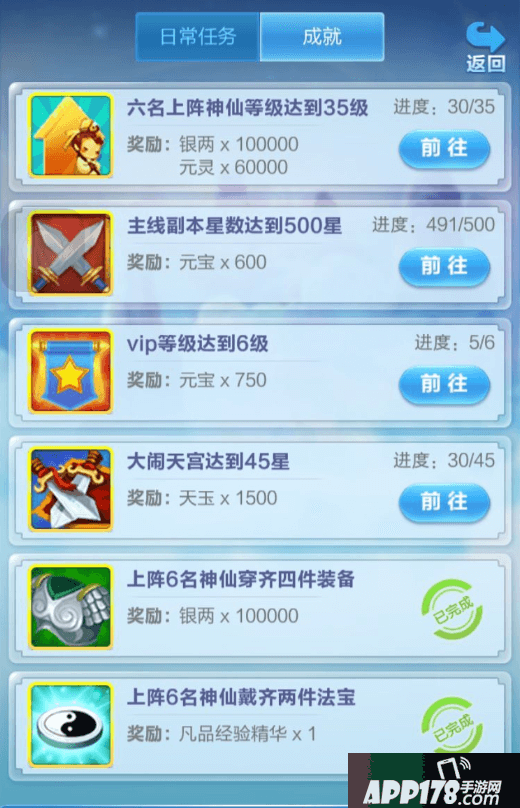 在《道友请留步》中,我们为道友们设置了非常丰富的任务,完成游戏中的任务,就能获得任务奖励,还能获得相应的成就奖励哦~不得不说,成就所得奖励真是非常丰富啊!元宝都是成百成百地送,成就越多,奖励越大。小兔兔心动得不行了呢~