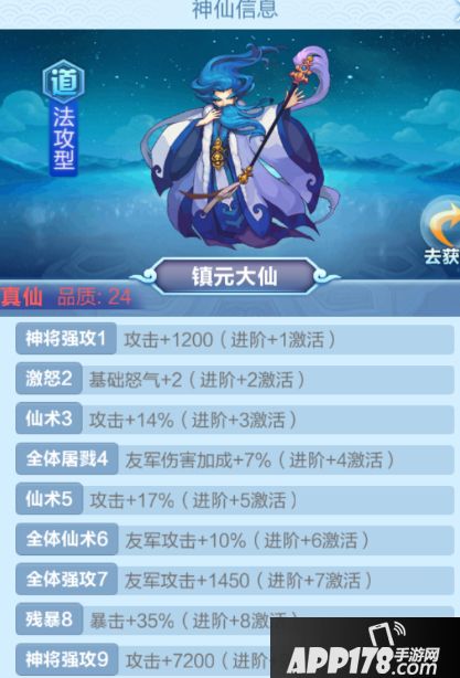 说回到道教的红卡,第二周完能拿到一张镇元大仙卡,但是对于非土豪玩家来说,在进阶+4之前,镇元大仙的输出远远比不上哪吒来得多,所以还是建议先等等,继续使用太乙组+哪吒组做一个过渡,等镇元大仙+4这个质变点之后,再上阵,会发现自己阵容的战斗力上升了一个档次,同时镇元大仙+4的天赋还能加成到主角和哪吒身上,双重保障。所以比较推荐镇元大仙+哪吒+托塔+姜子牙+玉帝的组合,进可攻退可守,不过切记,镇元大仙必须放在一号位出手,这样可以最大限度地保证对方一号位会被减怒,因为如果对方一号位也是强力输出+控制的话,可能会导致镇元无法在第一回合释放合击技,这样将会非常伤。当然对于平民玩家来说,哪吒组+镇元组的组合显得比较吃力,那么可以选择太乙组+镇元组,缺点就是太乙无法为镇元大仙提供太多的光环附加,镇元大仙的输出可能会偏低,这个组合更适合用来推图,因为中期镇元大仙的伤害接上太乙真人的伤害可以很好在副本里面进行输出,副本中的怪物一号位一般没有那么强的输出,可以更从容地选择排位,这个组合的缺点就是后期会比较乏力,太乙的进阶天赋对自己的伤害加成较高,但是输出不稳定(因为打击对象不固定),所以可能在pvp上会吃点亏。道家的阵容搭配比较多样,哪吒组+镇元组+玉帝的组合更偏向暴力,太乙组+镇元组+玉帝的组合攻守更加均衡,太乙的灼烧伤害越往后能提供的帮助也越大,具体看自己口袋里有多少元宝,怎么规划。但是光环神仙首推玉帝。