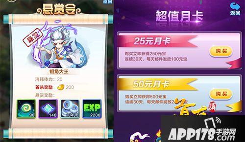 当然在这游戏里也有一些人民币玩家,他们可用人民币购买的无非是一些类似于特惠月卡之类的东西。比如25元月卡是立即获得250元宝,连续三十天,每天邮件发放100元宝;50元月卡是立即获得500元宝,连续30天每天邮件发放200元宝。因为这些元宝是逐天发放的,不会直接影响游戏进程。换句话说,就是人民币玩家花了钱买了月卡,不花钱的我们也可以通过多做几个如“三界悬赏”等奖励元宝的每日任务,分分钟追上与土豪玩家间的差距。