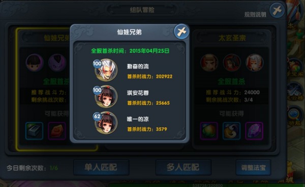 6、全服第一个通关任意副本的队伍将获得对应副本的全服首杀特殊奖励,而且还有永久署名权喔~点击【全服首杀】即可查看首次击杀者的名称,是不是超级炫酷呢?