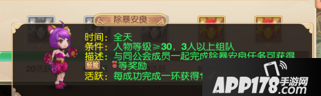 描述:与同公会成员一起完成除暴安良任务可获得经验以及帮会贡献值等奖励