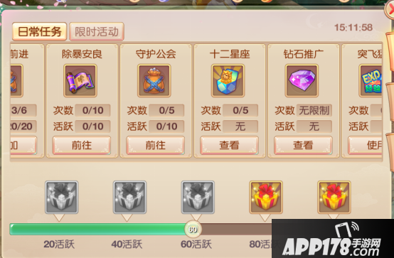 活跃:全部完成可获得10点活跃度。