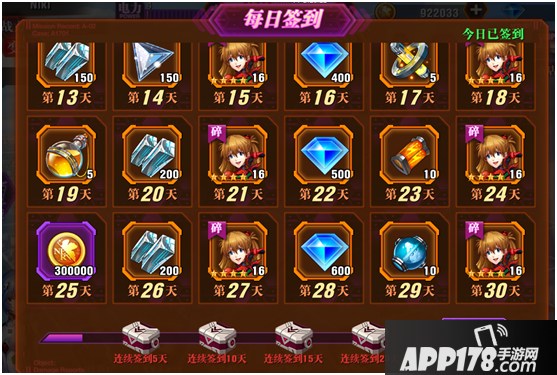签到奖励中每周都会有一次钻石奖励可领取,连续签到还有连续签到宝箱,细心的小伙伴记得每日签到领取丰厚的奖励哦!