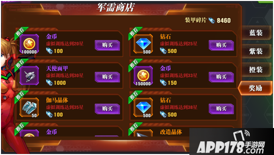 历练玩法中,虚拟训练达到一定的星数要求,就可以使用装甲碎片兑换对应的资源道具奖励,包括金币和钻石,竞技场商店也是如此。