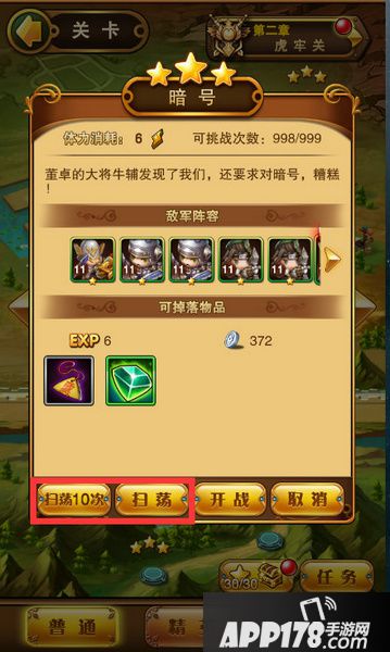 对于已3星通过的章节,还可以直接扫荡,不影响掉落奖励哦。