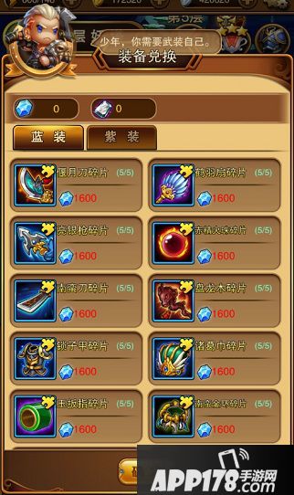 每次挑战成功可获得本层的奖励,不同的关卡获得核心奖励不同,玄金和黑铁两种,可以在右上角的装备商店兑换相应的装备。