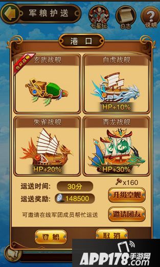 若主公已加入军团还可以点击“邀请团队”按钮,来邀请军团成员帮忙运输。邀请后需要等对方同意才可以出航。