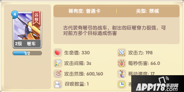 特殊的工程器械,弩车和投石车等,击打范围长度远大于宽度,偏细长的长方形,战斗中适合放到单路的后排较远位置进行单路的火力压制
