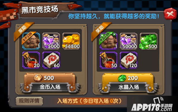 选择不同的入场方式获得的奖励不同,胜利场数越多,奖励越丰厚!