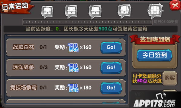 在做日常活动领取团队经验的同时,每个活跃度宝箱都很丰富,不可以错过领取哦。