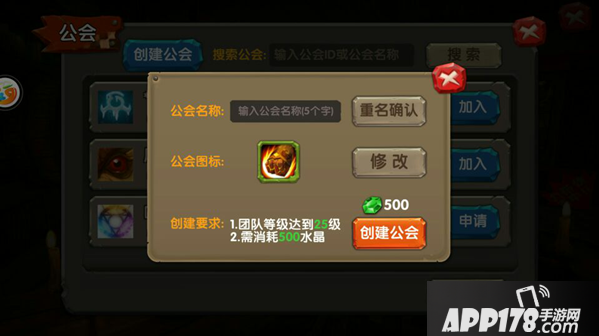 通过点击管理员可以创建或者加入公会,达到添加可加入的公会都将会直接显示在公会列表中。