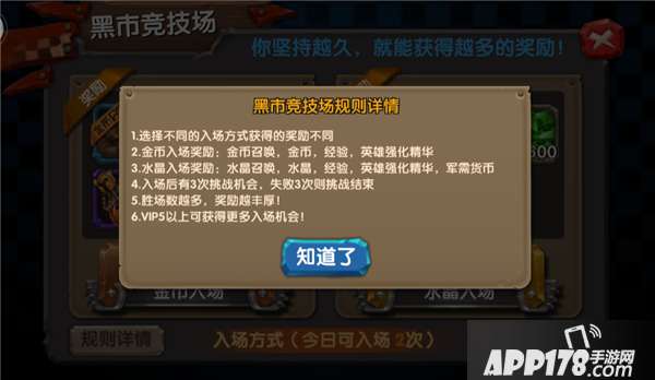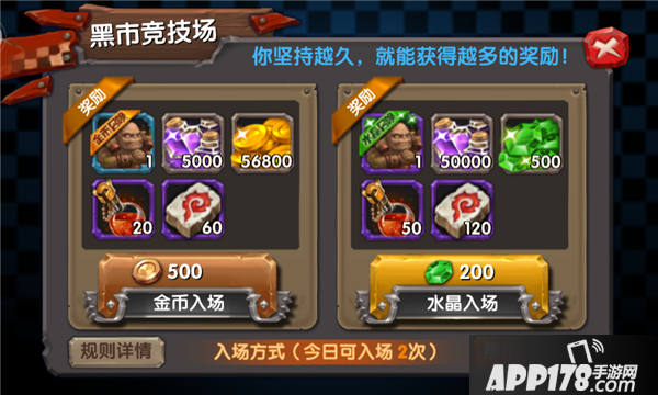 水晶入场方式,每次需要缴纳200水晶方可入场。除了入场需要缴纳水晶以外,和金币入场最大的不同就是奖励了。