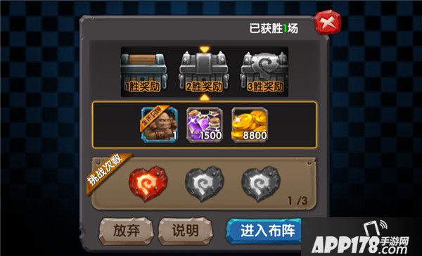 金币入场方式,每次需要缴纳500金币方可入场。点击进入布阵后,系统会自动匹配一个对手,然后和他进行对战。