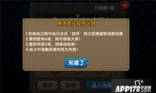 特别强调一点,在黑市竞技中,在系统为你匹配对手后,如果觉得对手太强,是可以选择放弃的,选择放弃后系统会重新为你进行匹配对手。