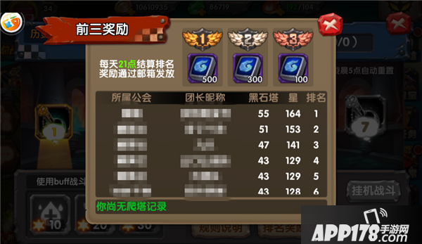 每天21点黑石塔进行结算,排名前三的玩家分别获得500,300,100的灵魂币奖励