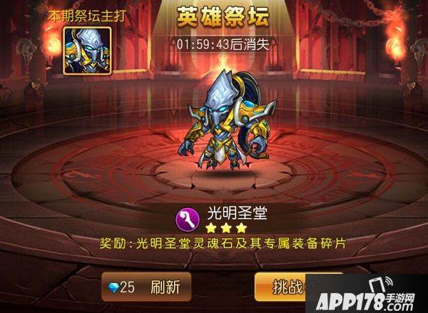 奖励:挑战胜利后将获得英雄灵魂石和专属装备碎片