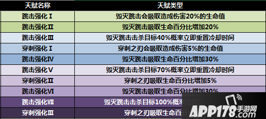 天赋效果:1.从对敌人伤害中吸取生命值 2.如果目标被此技能击杀,立即重置冷却时间