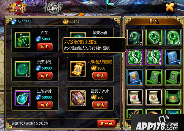 如果打不过困难副本,或者更高级的图纸尚未开启,可以通过黑市刷新购买这些稀有的丹药合成图纸。