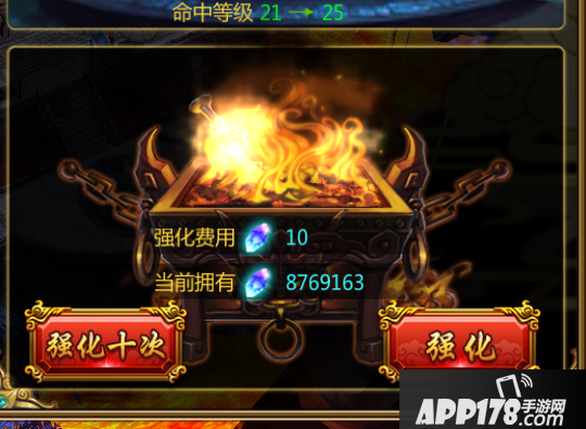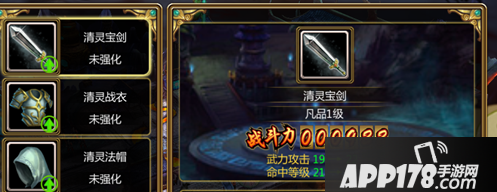 如图,点击强化即可对武器进行强化,每个装备都有用不一样的属性加成,强化装备需要消耗灵石。