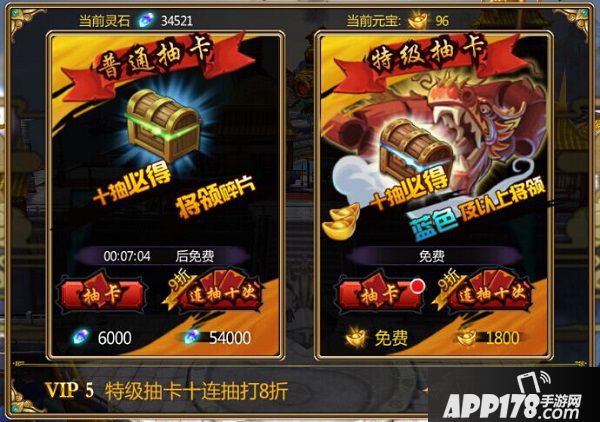 特级抽卡消耗的元宝可以通过商城充值获得,充值越多折扣和赠送的额度越高哦,此外更应该提高VIP权限,还有首充奖励等着你,还不快去充值试试看手气。