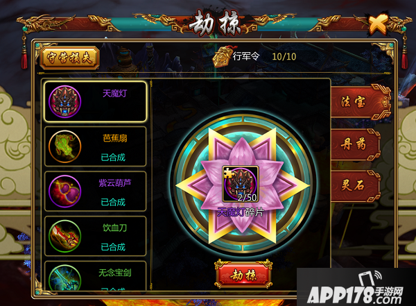 劫掠是法宝收集的核心环节,当你有了一部分碎片后,剩余的碎片主要可以依靠劫掠从其他玩家的手里抢来。当然这需要一定的实力和运气,加油哦。