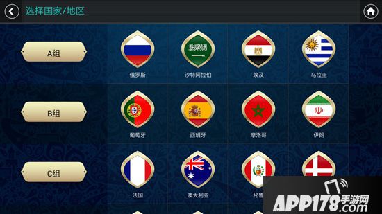 点击进入后,将可以选择你的第一支世界杯国家队阵容(还可以选择包括中国队、荷兰队、意大利队在内的非世界杯参赛队伍哦)。选择队伍后你将可以获取该国家队默认初始11人。