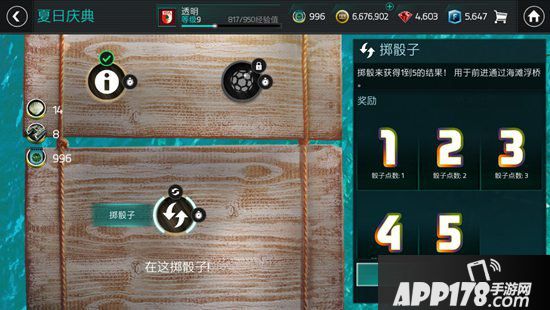 海滩浮桥章节是整个活动最激动人心的一环,使用之前章节获得的海滩浮桥点券,您可以投掷骰子,获得随机的1-5点步数,这也将会是您在棋盘中移动相应的格数。