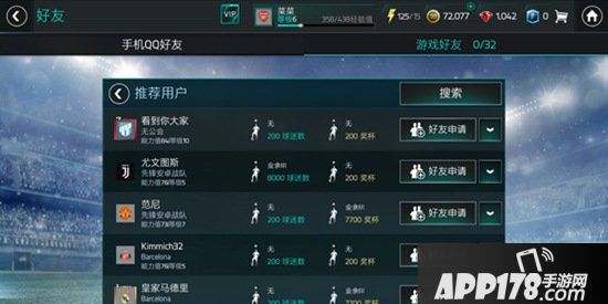 当用户等级5级及以上时,好友列表将会显示“推荐用户”,为玩家提供更多的交友选择;玩家可在搜索栏中直接搜索用户ID添加好友,增加了好友选择的指向性,帮助玩家进行更好的交流,增强社交体验。