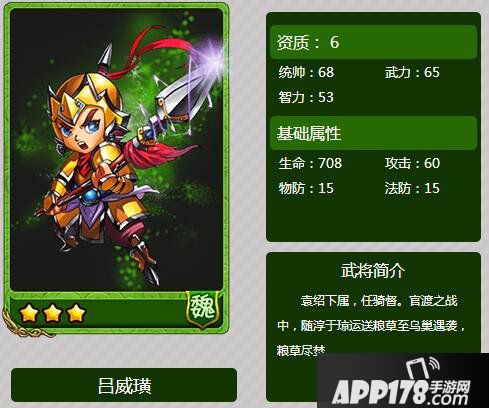 以上就是放开那三国吕威璜属性图鉴的全部内容,希望能给喜欢吕威璜的小伙伴们带来帮助。更多 相关攻略稍后送上~请继续关注APP178手游网~更多精彩期待你的分享~