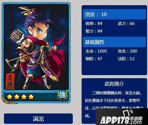 以上就是放开那三国满宠属性图鉴的全部内容,希望能给喜欢满宠的小伙伴们带来帮助。更多 相关攻略稍后送上~请继续关注APP178手游网~更多精彩期待你的分享~