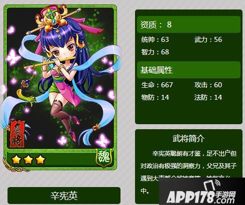 放开那三国辛宪英 放开那三国图鉴 放开那三国辛宪英属性图鉴