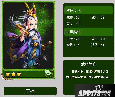 以上就是放开那三国王植属性图鉴的全部内容,希望能给喜欢王植的小伙伴们带来帮助。更多 相关攻略稍后送上~请继续关注APP178手游网~更多精彩期待你的分享~