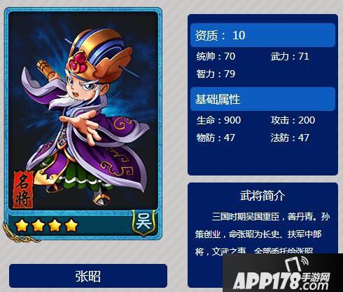 以上就是放开那三国张昭属性图鉴的全部内容,希望能给喜欢张昭的小伙伴们带来帮助。更多 相关攻略稍后送上~请继续关注APP178手游网~更多精彩期待你的分享~