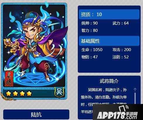 以上就是放开那三国陆抗属性图鉴的全部内容,希望能给喜欢陆抗的小伙伴们带来帮助。更多 相关攻略稍后送上~请继续关注APP178手游网~更多精彩期待你的分享~