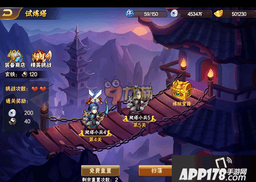 2、玩家每天有固定次数的重置机会,重置将恢复玩家的挑战次数,回到第一关。