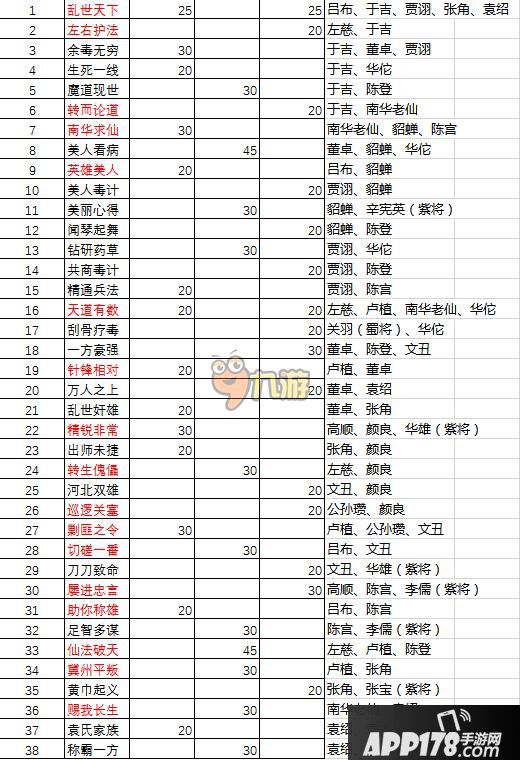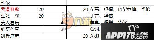 10资:华佗,颜良,文丑,陈宫,陈登,张角,袁绍,