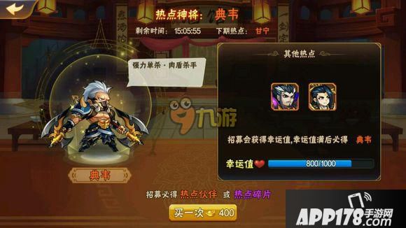 力战千军:典韦、张合一起上阵可激活20%的生命加成