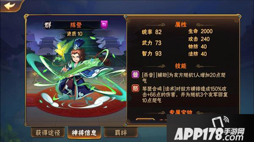 陈登,群雄谋士,本身的普攻和怒攻都将额外为友军增加大量怒气!