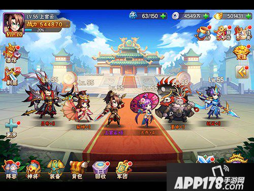 阵容的布阵也是相当重要,有时关卡打不过,或者没能三星通关不一定是阵容搭配不好,也可能是阵容的布阵没有布好。通常在阵容的前排应该放置肉盾型或者控制型的武将,而后排应该放置输出型或者辅助型的武将,这样一来才能使武将的能力最大化的发挥出来。