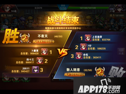 战斗结束后,可以看到统计界面。胜负方的关系和伤害前三的玩家信息。