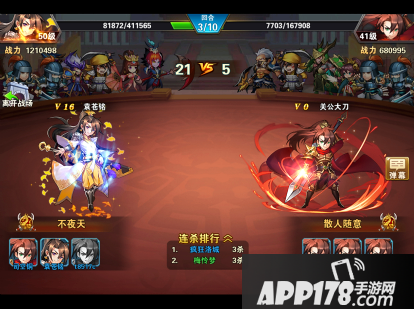 战斗开始后将由双方成员轮流上阵进行战力比拼,每位成员在胜出后可以迎战下一位对手,最多可以连胜三场。依次往复,直到一方全部成员全部被击败,仍有成员存活的军团将获得本次战斗的胜利。