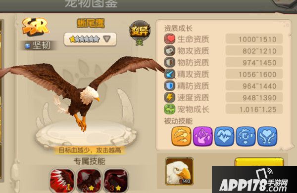 但爆发高 用于pvp和日常任务是绝对绰绰有余的 属于中前期宠物。鹰可以说