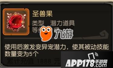 效果:变异宠物使用圣兽果后可以激发自身的潜力,使其被动技能变成5个。