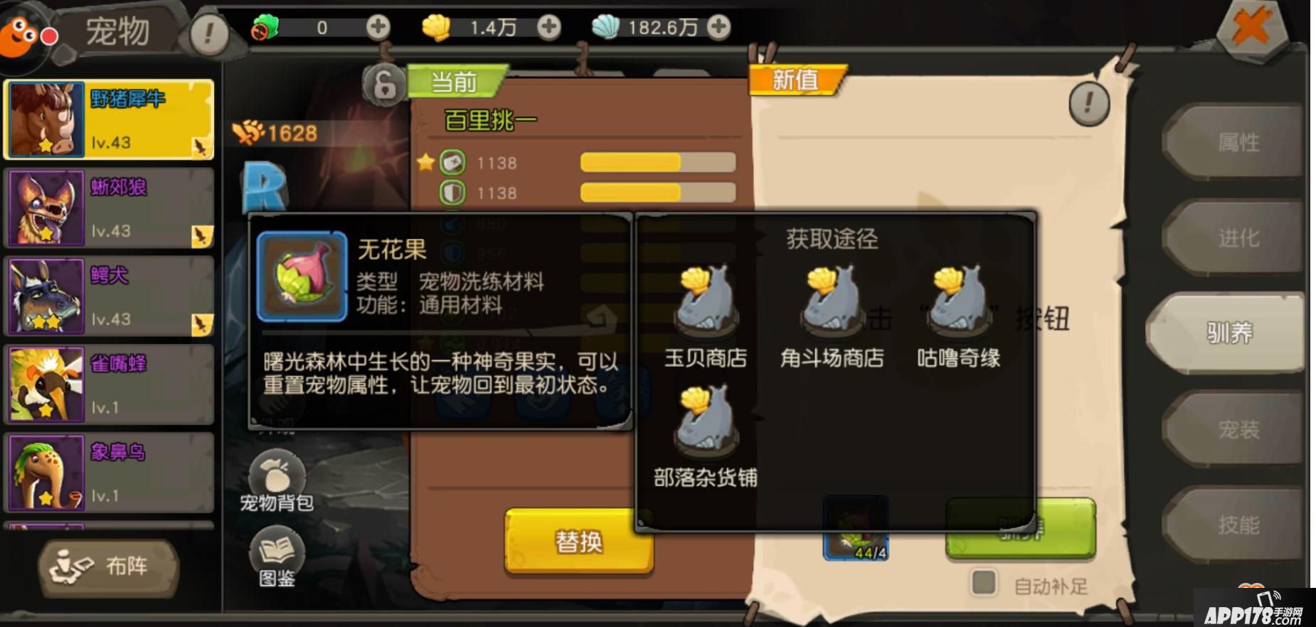 通过右下角【宠物】一选择你想要变异的宠物一驯养一无花果驯养,这就是让宠物变异的方法,最好想找一只强力的宠物来驯养,建议是橙色宠物,准备大量的无花果,因为变异宠物的概率是极小的,只有通过不断的驯养,界面出现变异的字样,就代表成功这只宠物变异了。