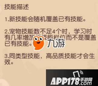 在宠物技能界面中,我们可以看到技能描述是这样的: