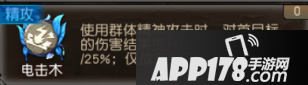 电击木:使用群体精神攻击时,对首目标的伤害结果提升5%/10%/15%/20%/25%;仅战宠生效。
