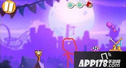 第二关用红鸟吹第一个的下面会把第二个也挤倒的 ,这时会送两个新的鸟可以用来打第三关。