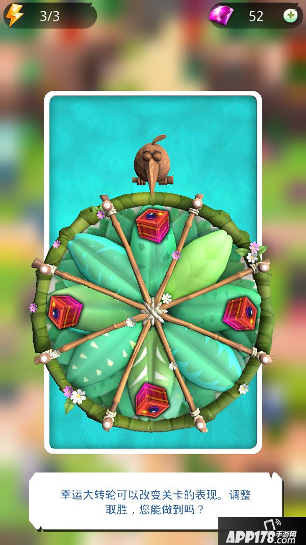 除了上述奇妙的机关外,我们在关卡开始前会经常碰到一个叫幸运大转轮的机关。这个转轮会随机改变关卡的表现,在地图上增加譬如炸药箱这样的障碍道具,使得同一个关卡的表现多样化。如果您运气爆棚,幸运大转轮为您的地图上放下了大量的炸药箱,您通过关卡和获得高分的可能性就会大大增加哦。看来运气也是实力的一部分呢!