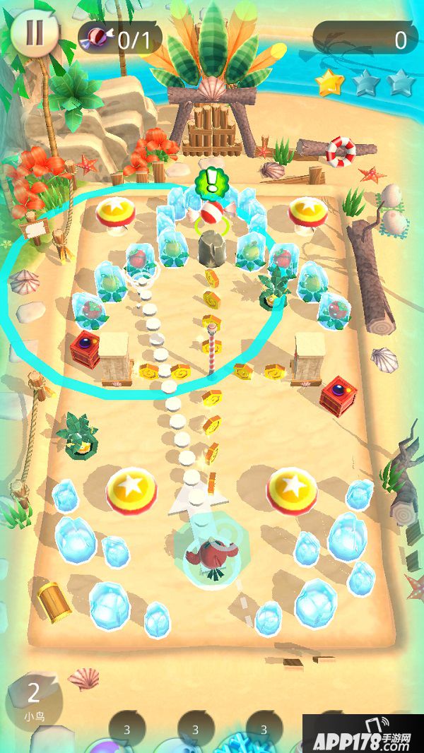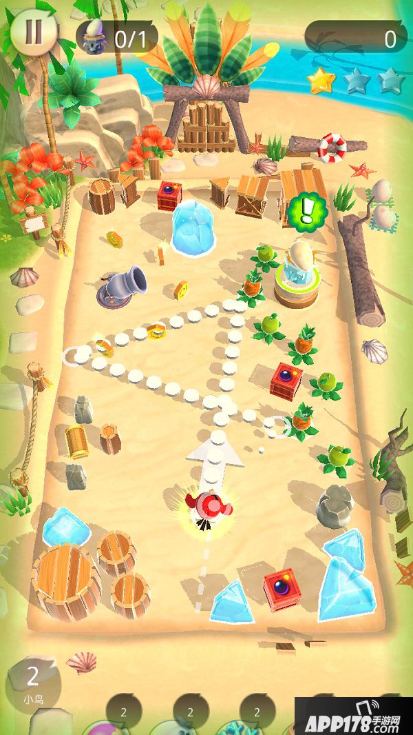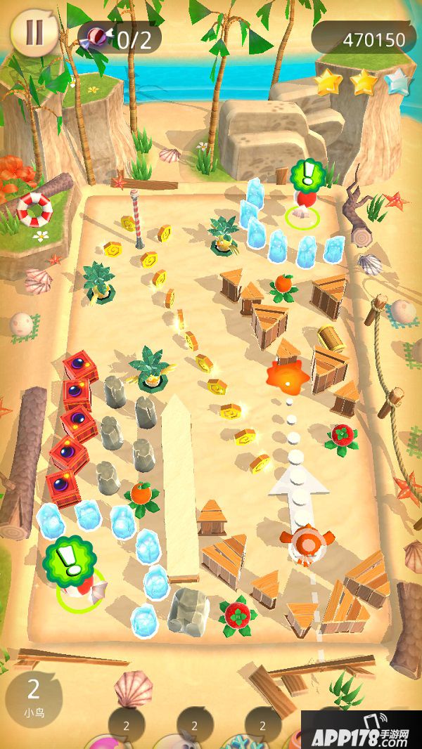 沾粘则更像是一种策略类道具,它能够使小鸟粘在第一次撞击的撞击点上而无法反弹,灵活运用沾粘道具,能帮助玩家调整小鸟的位置以及出射角度。