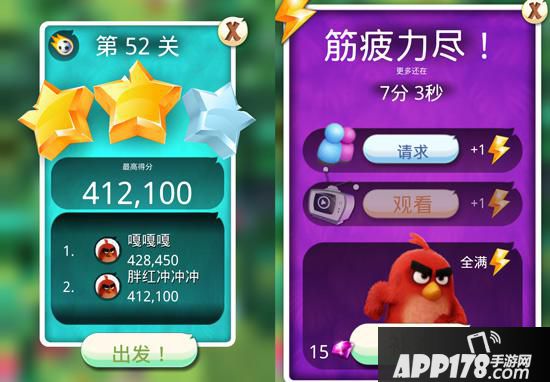 拥有好友后,当玩家在游戏里体力不支,无法继续挑战关卡时,就可以向朋友求助,让他们给你“充电”。同时,你也可以在游戏的关卡地图中,实时掌握好友的最高积分以及目前的闯关进度。这里要特别一提的是,朋友之间的体力索取是通过邮件来确认的,为此要注意查看游戏信箱!